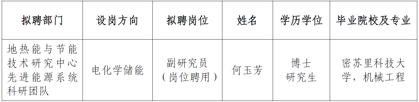 根据研究所岗位聘用工作有关规定及《中国科学院广州能源研究所2025年度高层次人才招聘启事》要求,拟聘用以下人员到我单位工作,现予公示。